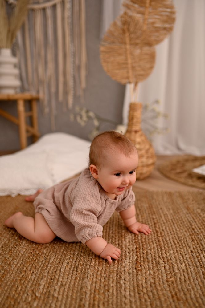 Muślin bawełniany to materiał wyjątkowo przyjazny dla wrażliwej skóry niemowląt – nie powoduje podrażnień, świetnie oddycha i reguluje temperaturę ciała.