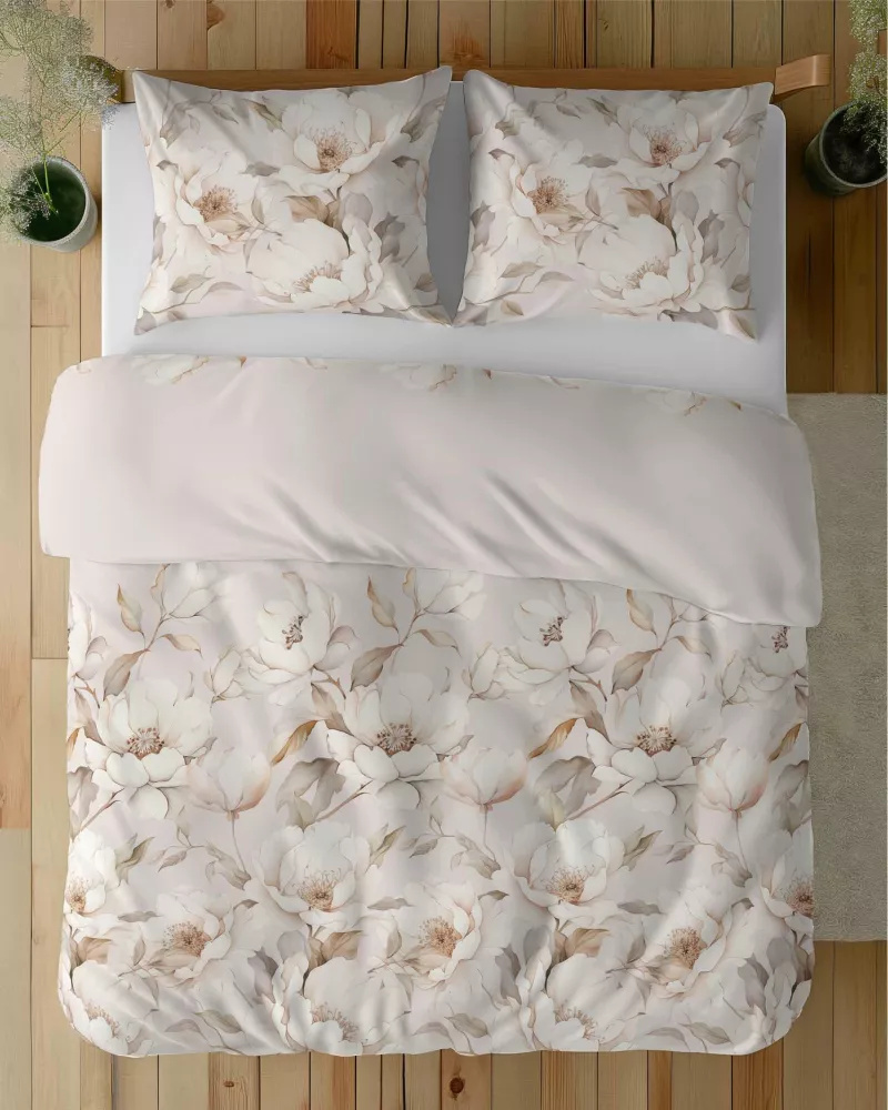 Pościel bawełniana 5501 A Naturalis – jasnobeżowa z kremowymi piwoniami Detexpol