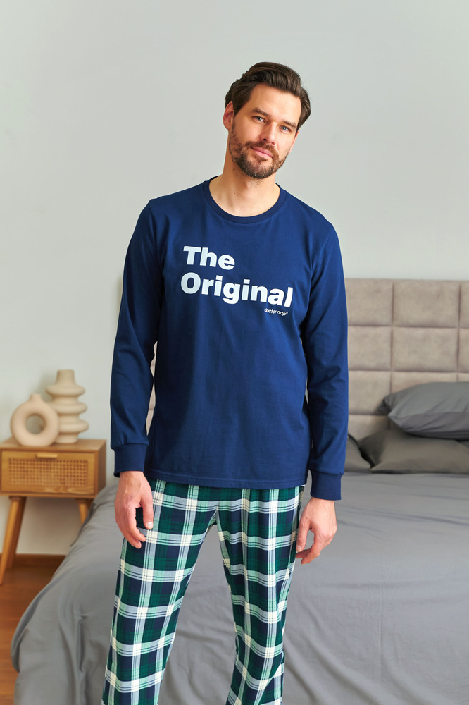 Doctor Nap 7341 to wygodna piżama męska składająca się z koszulki z długim rękawem i napisem „The Original” oraz spodni w kratę z elastycznym pasem i ściągaczami. Możesz skompletować cały zestaw rodzinny – mama, tata i dziecko w dopasowanych piżamach. To świetny wybór na święta, wspólne wieczory czy sesje zdjęciowe. Polska produkcja to gwarancja jakości.