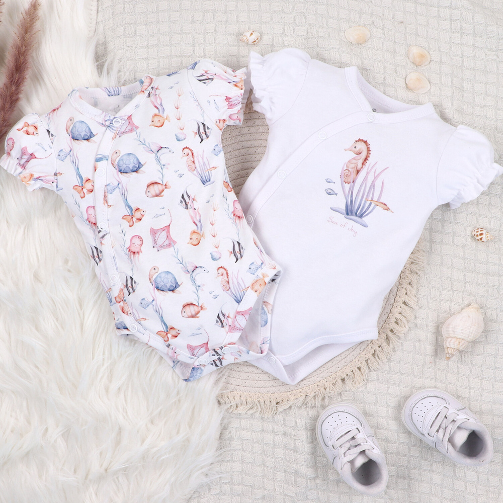 • Nini body Underwater World – 100% bawełna organiczna, krótki rękaw, miękkie, kopertowe, napy.