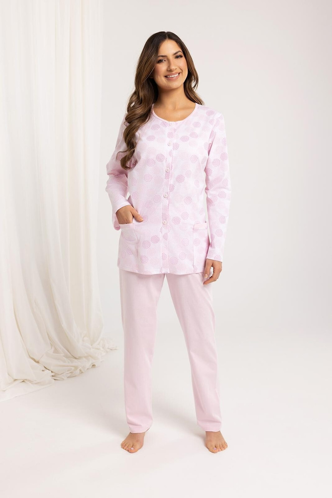 Damska piżama bawełniana Regina 710 różowy – długi rękaw, guziki, wygoda i klasyka