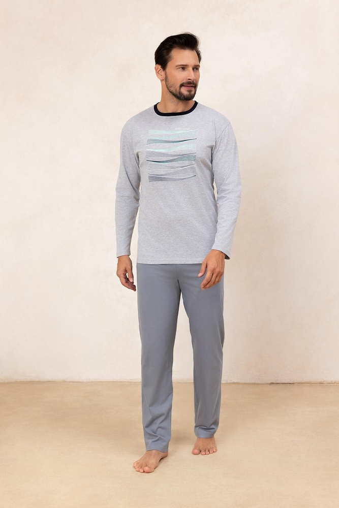 Piżama męska Regina 492 szara– bawełna, długi rękaw, wygodna i praktyczna