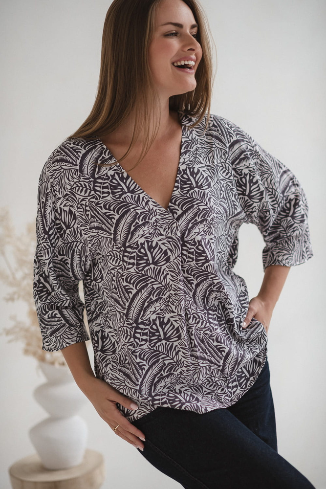 Milk&Love Bluzka ciążowa i do karmienia Bahama Mama w tropikalny print– wiskoza, oversize, rękaw 3/4