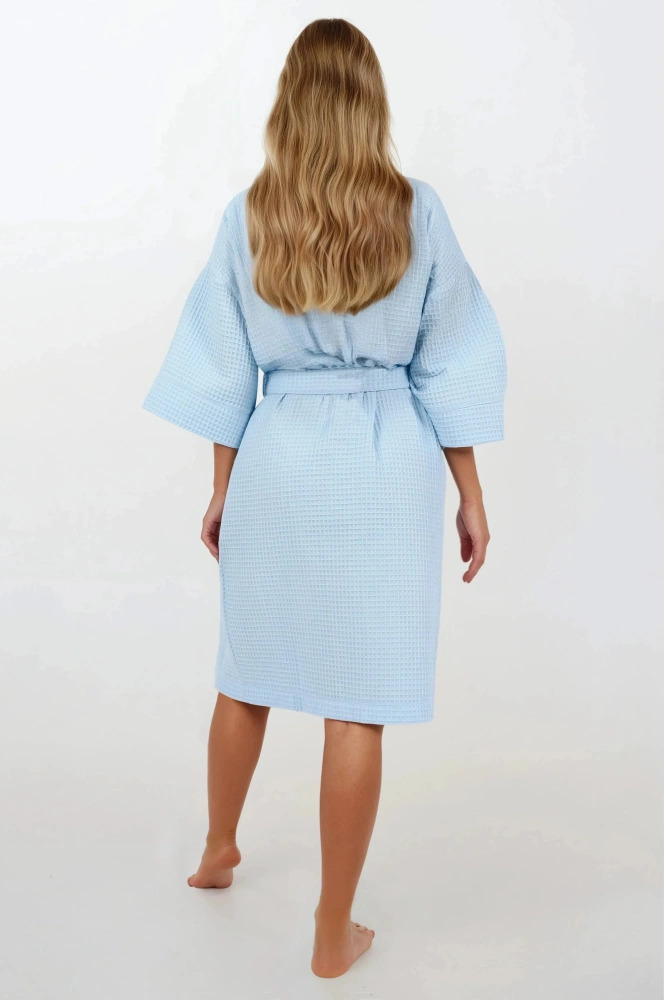 Szlafrok damski Blue Lady – 100% bawełna, rękaw 3/4, szerokie mankiety | Momenti Per Me