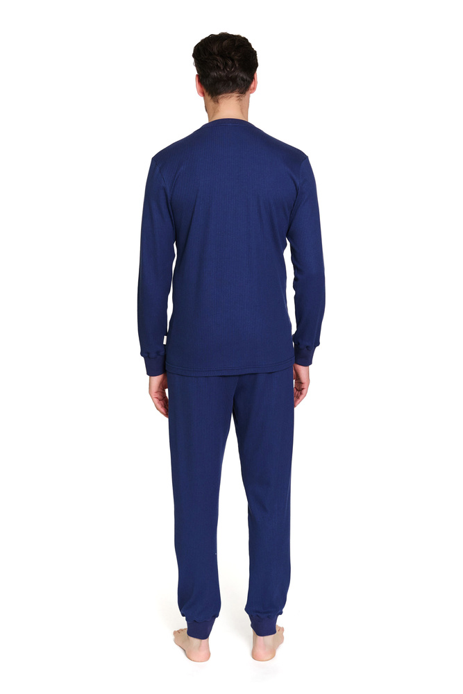 Jeśli szukasz męskiej piżamy, która będzie wygodna, praktyczna i dobrze wygląda – model 7350 Doctor Nap to świetny wybór. Uszyta z miękkiej, oddychającej bawełny z drobnym prążkiem, świetnie dopasowuje się do sylwetki. Długie rękawy i nogawki zakończone są elastycznymi ściągaczami, które zapobiegają podwijaniu się materiału. Klasyczny, granatowy kolor pasuje każdemu. A jeśli lubisz rodzinne zestawy – ten model ma też wersję dla kobiety i dziecka!