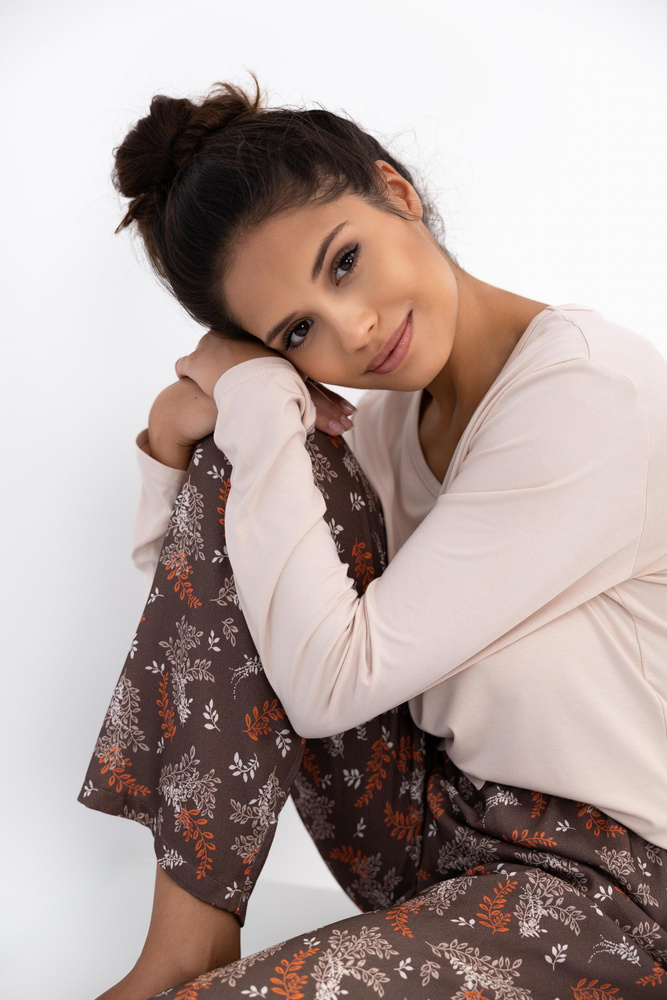 Poczuj komfort każdej nocy! Piżama Shelby Sensis to idealny wybór dla miłośniczek wygody i modnych detali. Uszyta z miękkiej, oddychającej wiskozy, zapewnia przyjemne otulenie ciała. Koszulka z długim rękawem i kobiecym dekoltem w szpic świetnie komponuje się z wzorzystymi spodniami na gumce w pasie. Skład: koszulka – 94% wiskoza, 6% elastan; spodnie – 100% wiskoza. To piżama, w której poczujesz się wyjątkowo od wieczora do poranka.