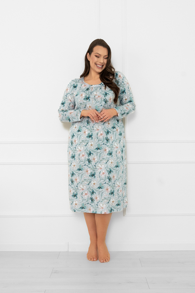 Damska koszula nocna Sekwoja – 100% bawełna, długi rękaw, nadruk kwiatowy Italian Fashion