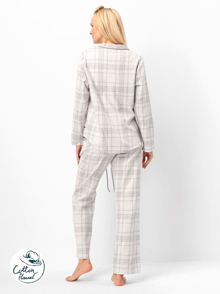 Piżama damska Key LNS 401 – flanela bawełniana, długi rękaw, zapinana na guziki