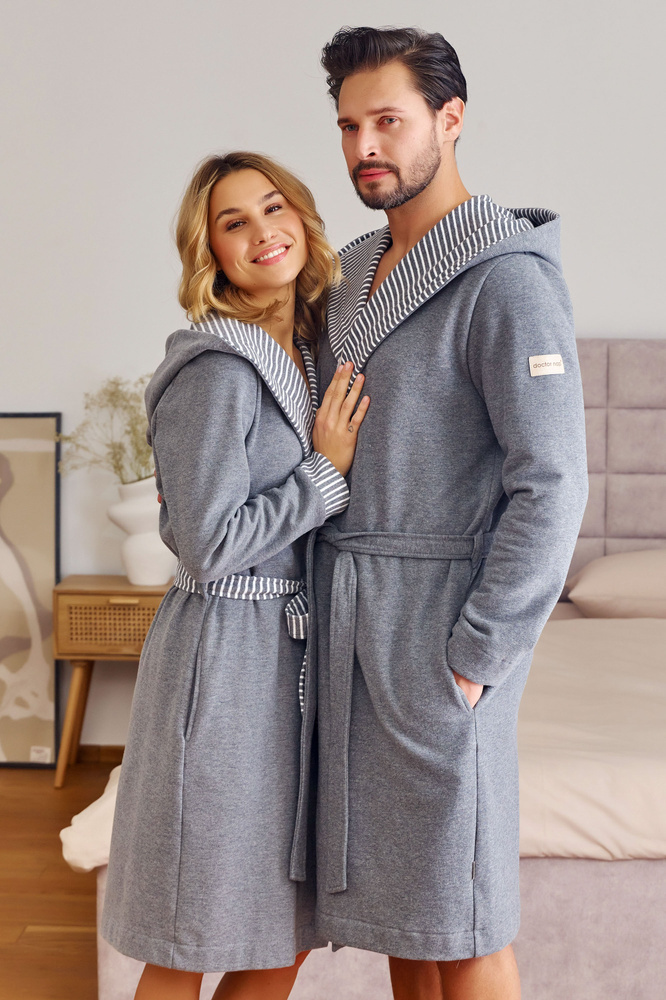 Doctor Nap 7229 – szlafrok damski z kapturem i kontrastowymi paskami