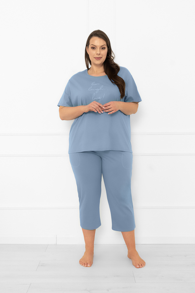 Piżama damska Ksara – naturalna bawełna krótki rękaw, 3/4 spodnie Italian Fashion - stalowy