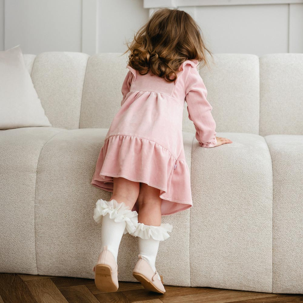 Sukienka Fluffy Tails Eevi w kolorze różowym to propozycja dla małych elegantek. Wykonana z przyjemnego w dotyku weluru, zapewnia komfort noszenia w chłodniejsze dni.