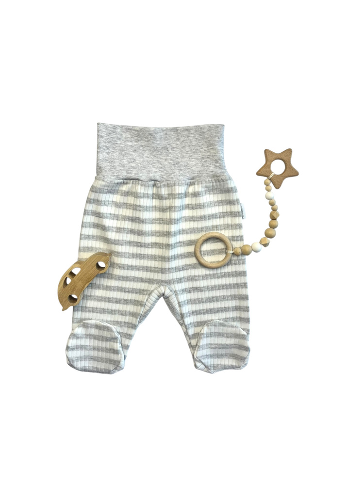 • Półśpiochy Mamatti PD14820 – szare w paski, bawełniane, z elastycznym pasem, wygodne i delikatne dla dziecka