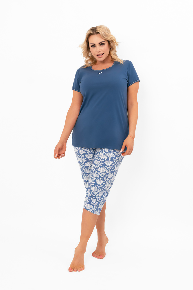 Piżama damska Boma – kwiatowe spodnie 3/4 i elegancka góra Italian Fashion - jeans/druk