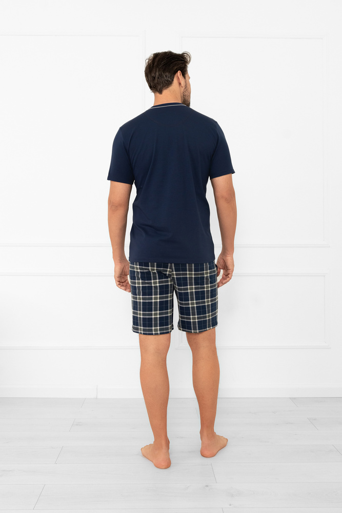 Piżama męska Andreas – klasyczny komplet z koszulką i spodniami w kratę Italian Fashion - granatowy/druk