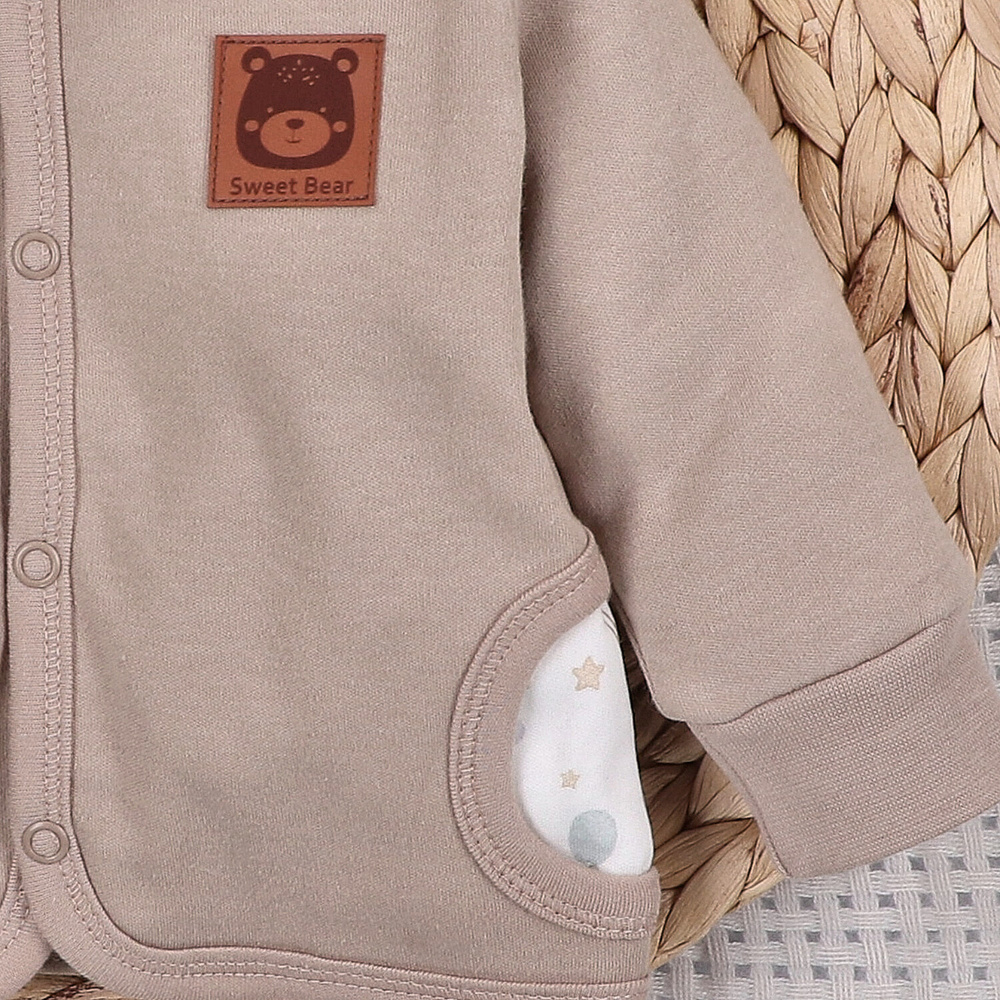 Bluza niemowlęca Nini Sky Journey została stworzona z myślą o chłopcach, którzy potrzebują wygodnych i ciepłych ubranek do codziennych przygód. Dwuwarstwowa konstrukcja z bawełny organicznej zapewnia komfort termiczny, nie powodując przegrzewania.