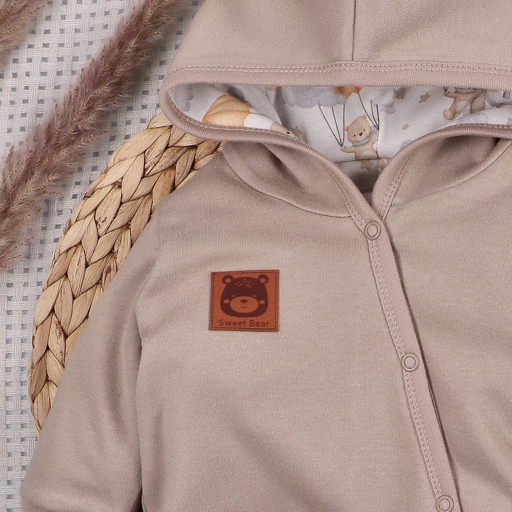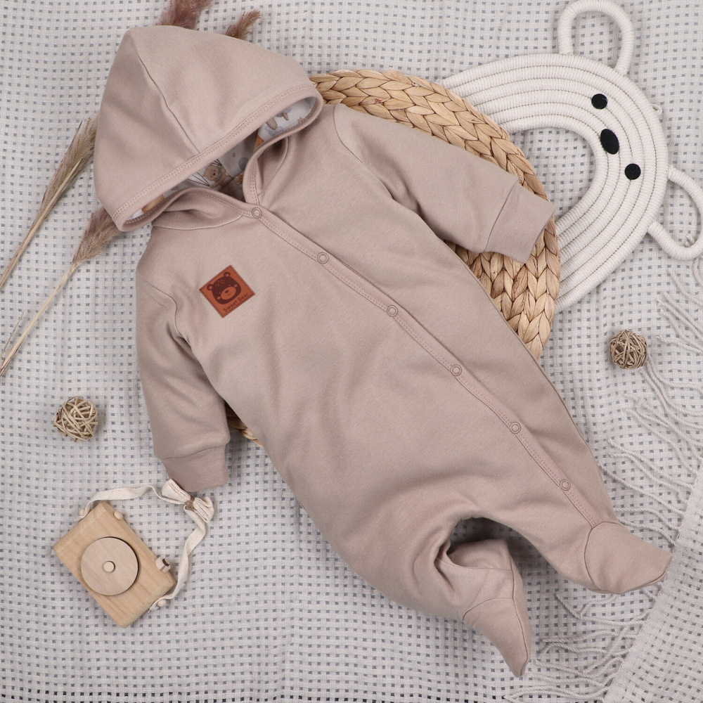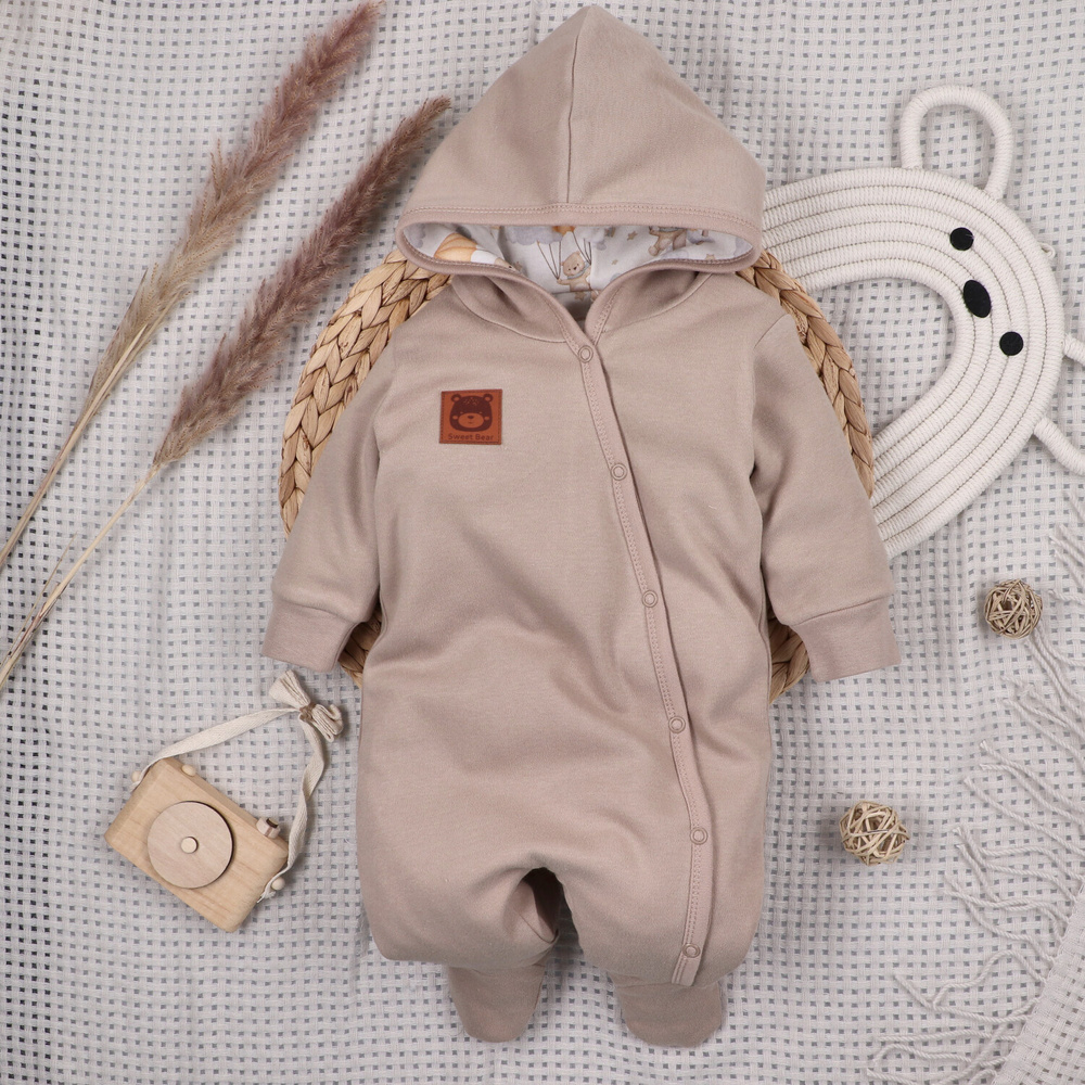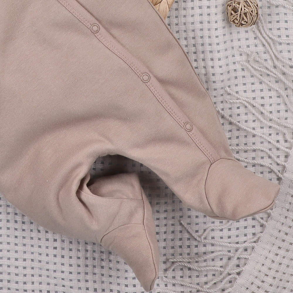 Model wyróżnia się uniwersalnym fasonem i subtelną kolorystyką, dzięki czemu pasuje zarówno dla chłopców, jak i dziewczynek. Luźny krój nie ogranicza ruchów, a praktyczne zapięcia ułatwiają ubieranie i zmianę pieluszki.