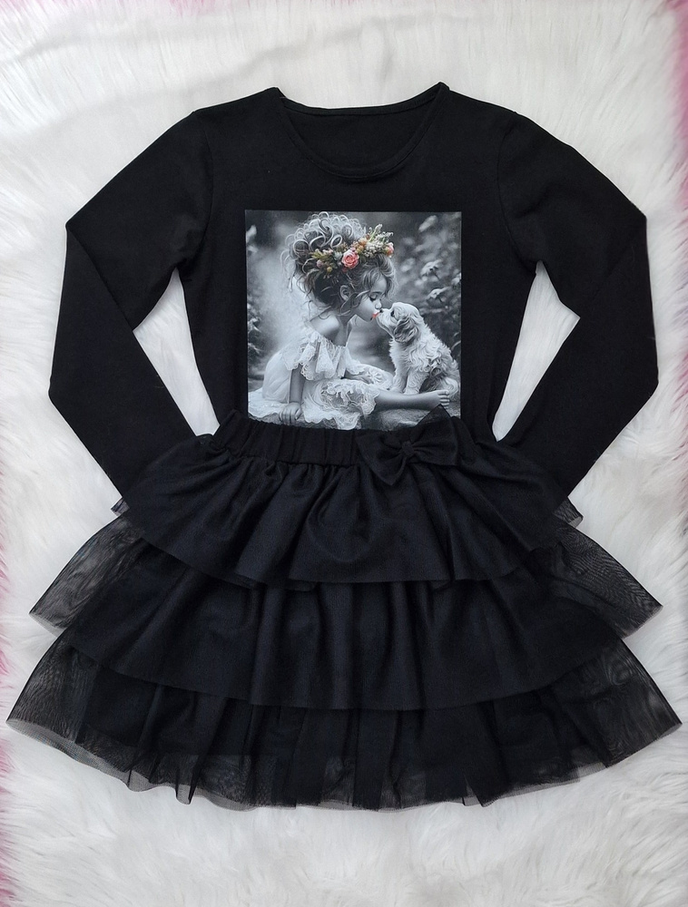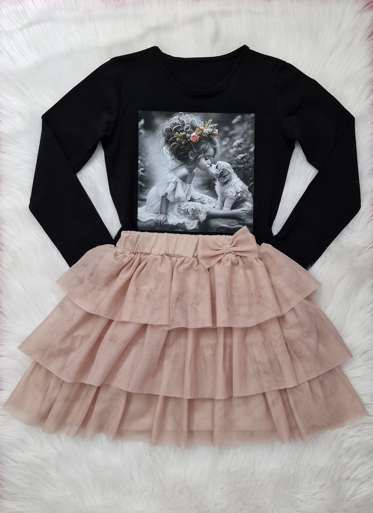 Kiss Bambarillo czarny– bluzka dziewczęca z dzianiny jersey | Bawełna 95%, elastan 5%