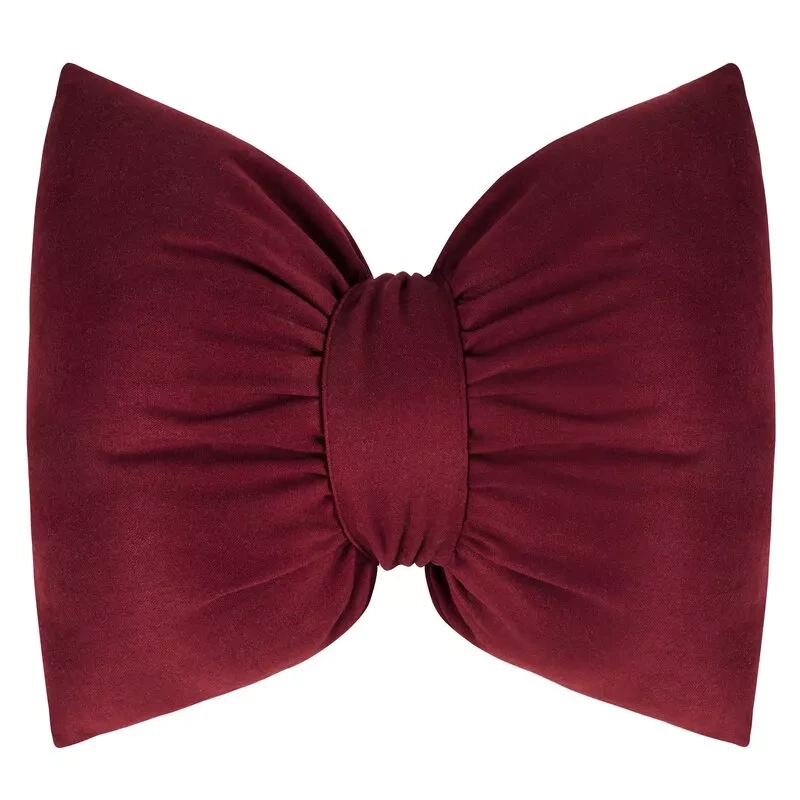 Eurofirany Poduszka świąteczna 45x55 bordowy– welwet, ozdobna kokarda
