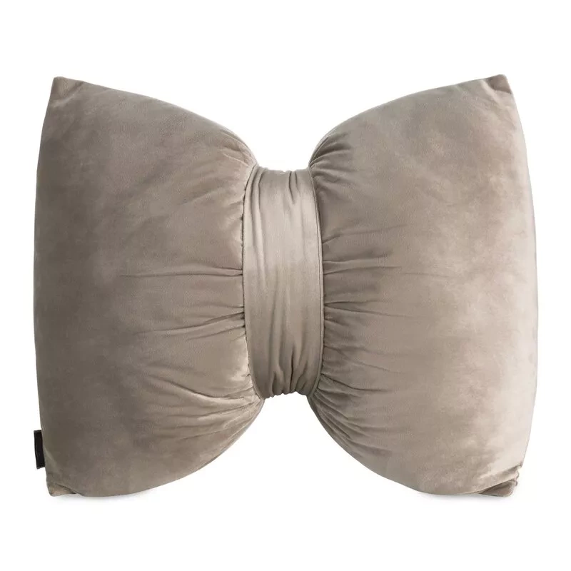 Eurofirany Poduszka świąteczna 45x55 beżowa welwet, ozdobna kokarda