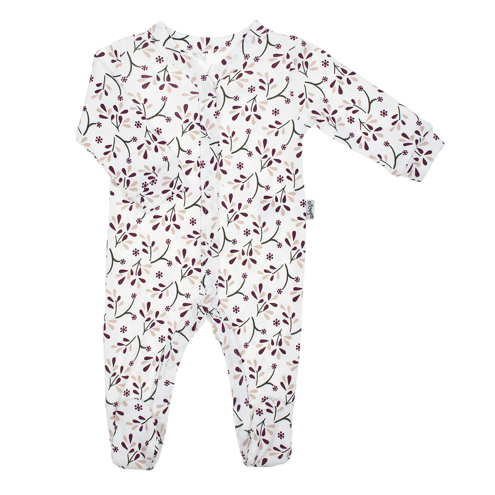 Dzięki praktycznemu zapięciu na napy przebieranie dziecka staje się szybkie i łatwe. Wszyte stópki zapewniają ciepło i wygodę bez konieczności zakładania dodatkowych skarpetek. Kwiatowy wzór sprawia, że pajacyk prezentuje się wyjątkowo uroczo.