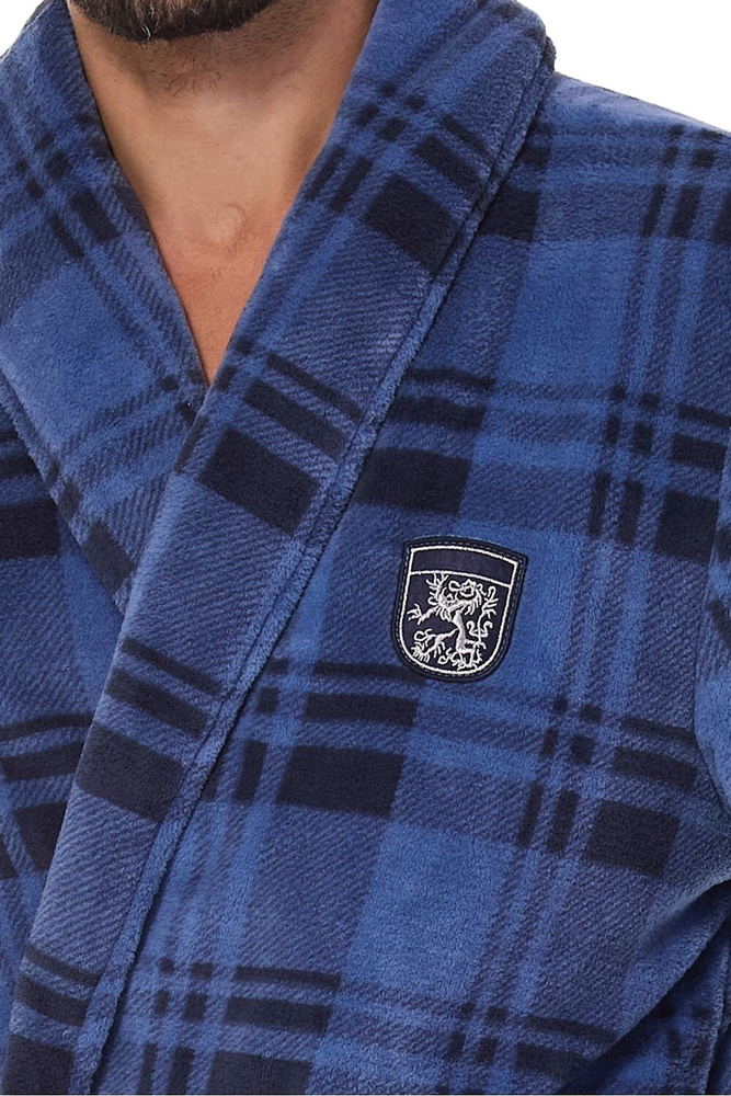 L&L 2456 BJ navy– męski szlafrok w kratkę, miękki z kieszeniami