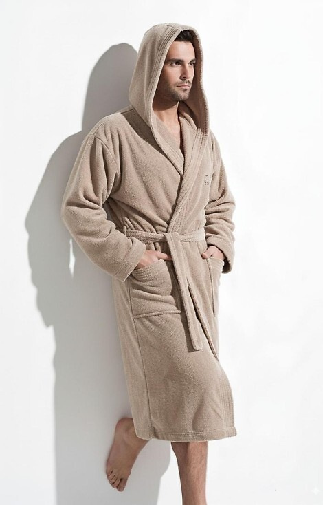 L&L Iwo cappucino– męski szlafrok z kapturem, miękki i komfortowy