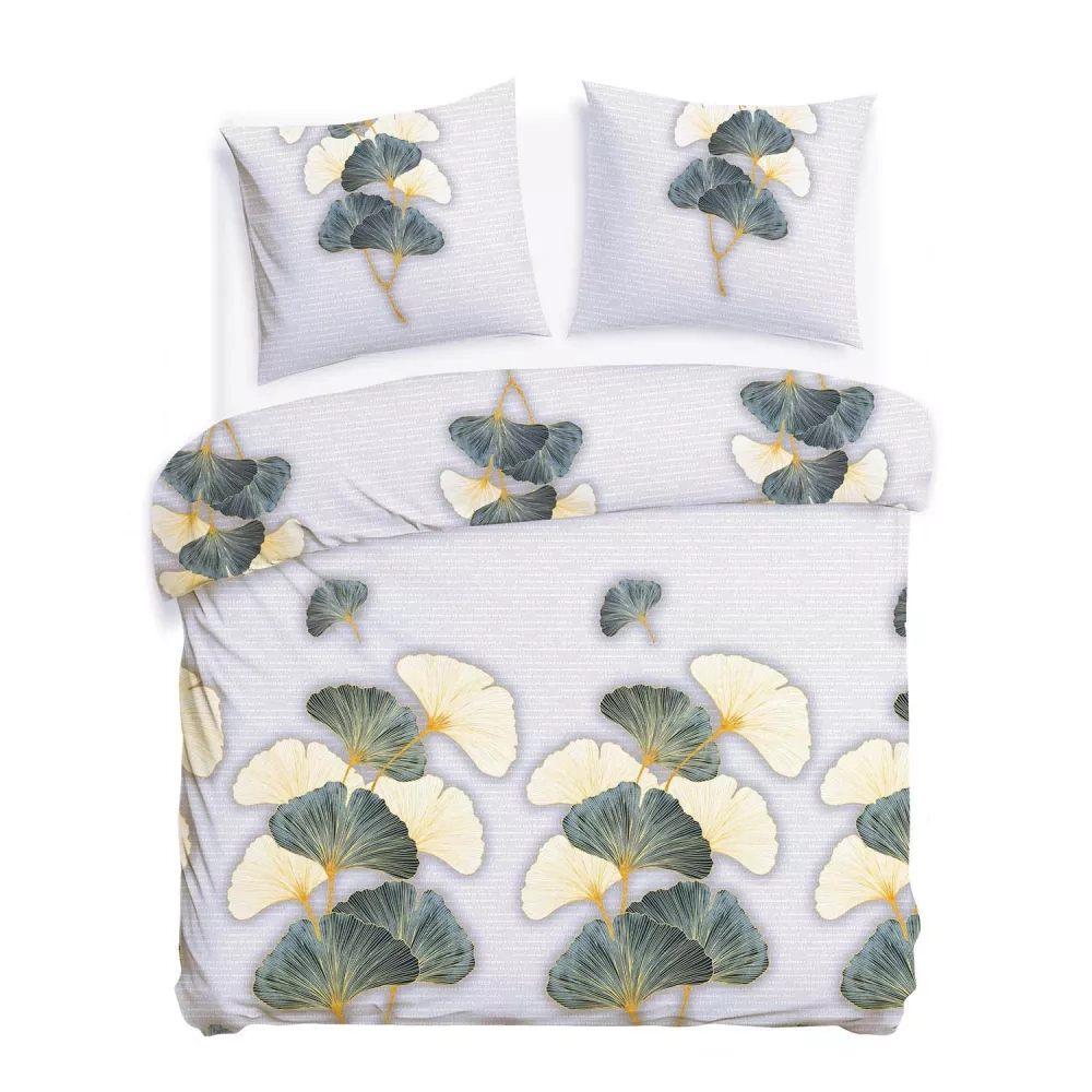 31510/1 Darymex Flanelove szara zielona liście miłorzębu– komplet pościeli flanelowej, 100% bawełna, ciepła i przytulna