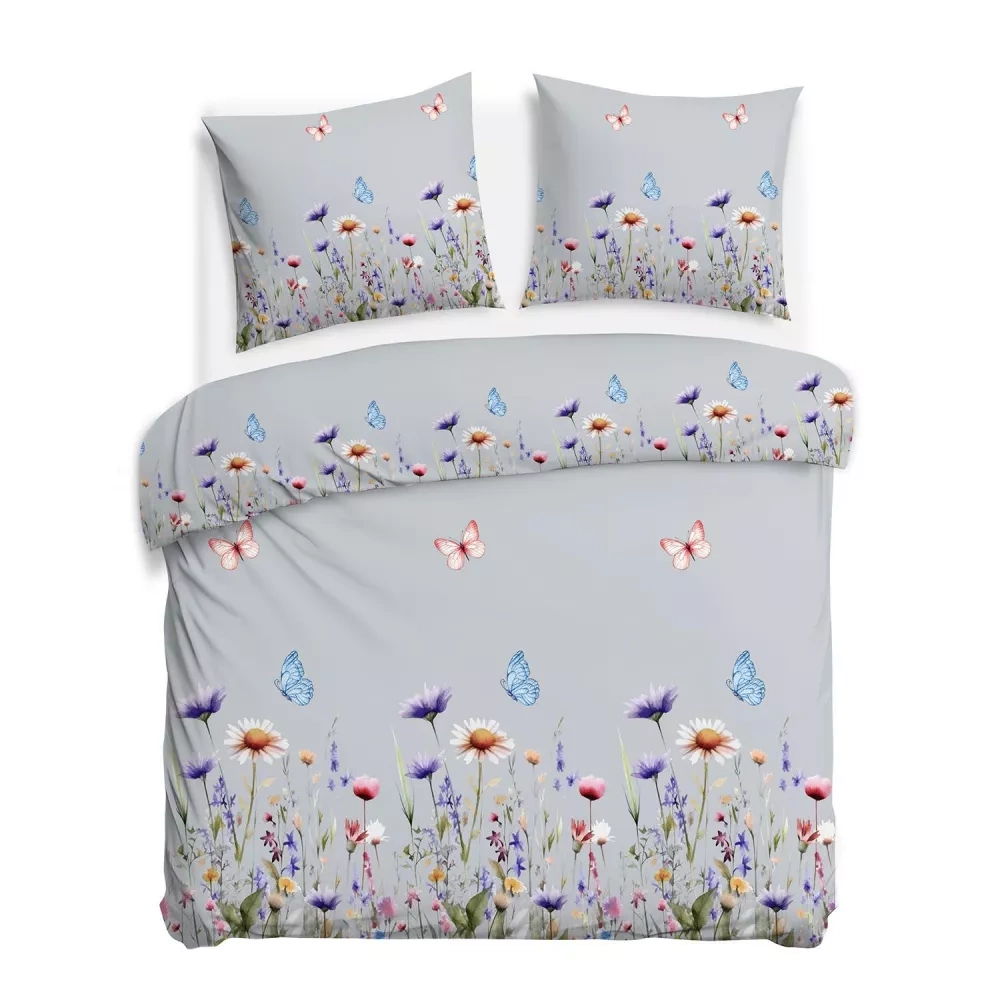 31512/2 Darymex Flanelove szara kolorowa kwiaty– komplet pościeli flanelowej, 100% bawełna, ciepła i przytulna