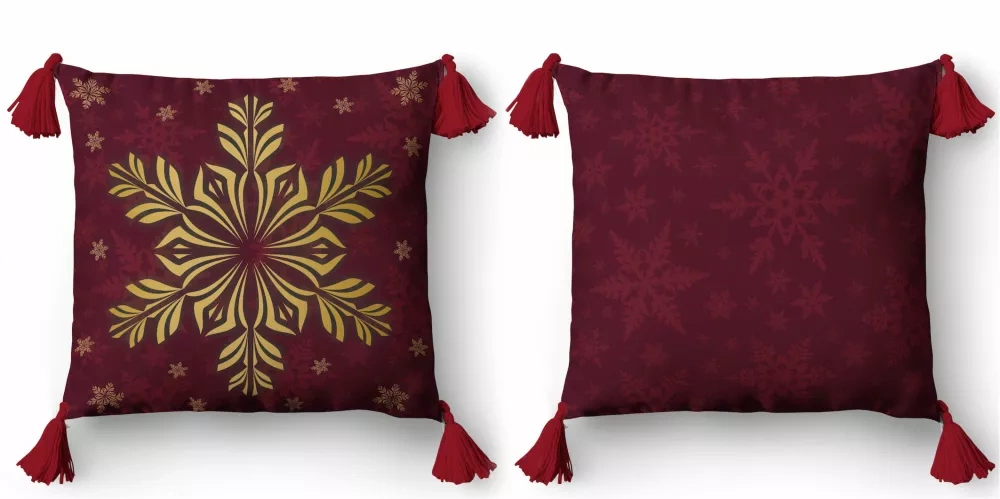 5384 A Christmas Deco Detexpol bordowa ze złotą śnieżynką– poszewka dekoracyjna świąteczna 45x45, Panama, zamek błyskawiczny
