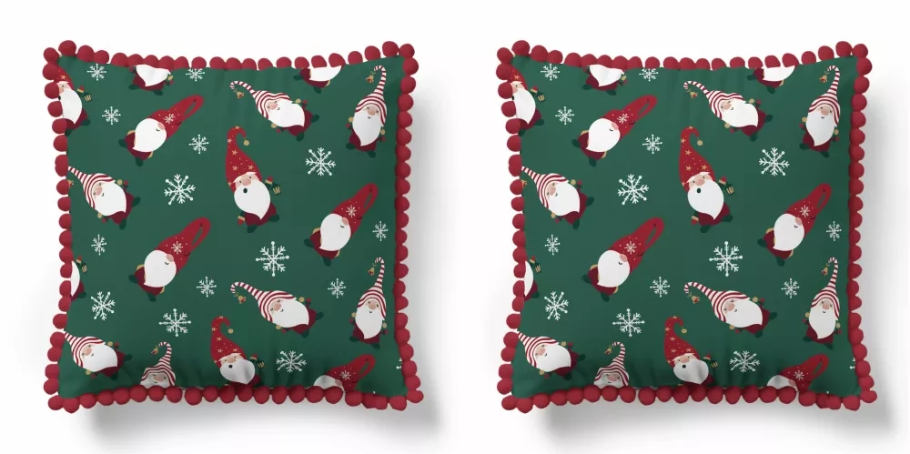 5383 A Christmas Deco Detexpol skrzaty i śnieżynki na zielonym tle– poszewka dekoracyjna świąteczna 45x45, Panama, zamek błyskawiczny