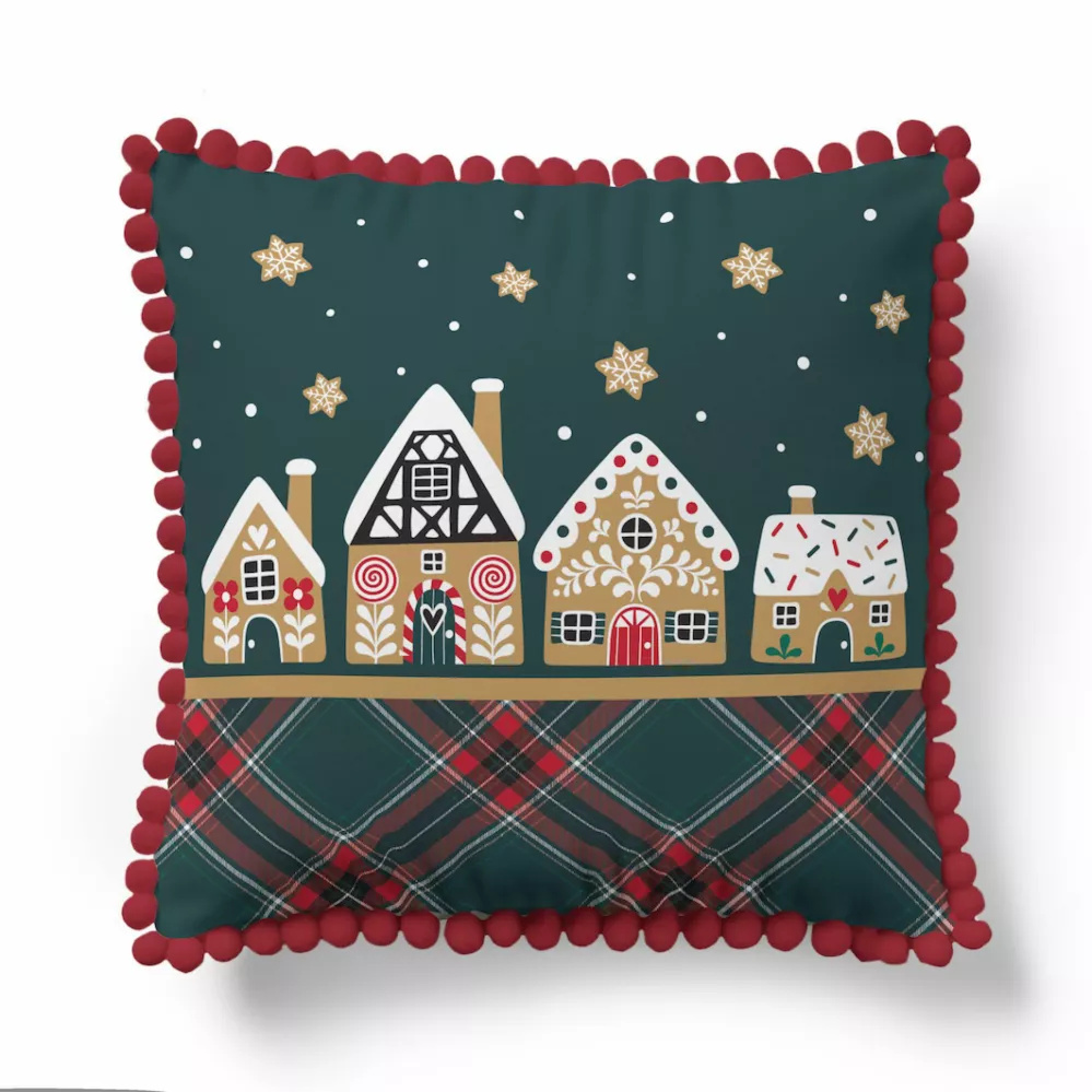 5379 A Christmas Deco Detexpol domek z piernika i gwiazdki – poszewka dekoracyjna świąteczna 45x45, Panama, zamek błyskawiczny