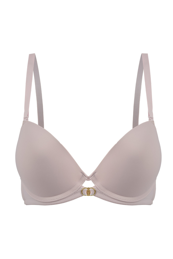- Biustonosz Mediolano Nela 19241. Push-up, pudrowy róż, gładki materiał, złote pierścienie, regulowane ramiączka i haftka.