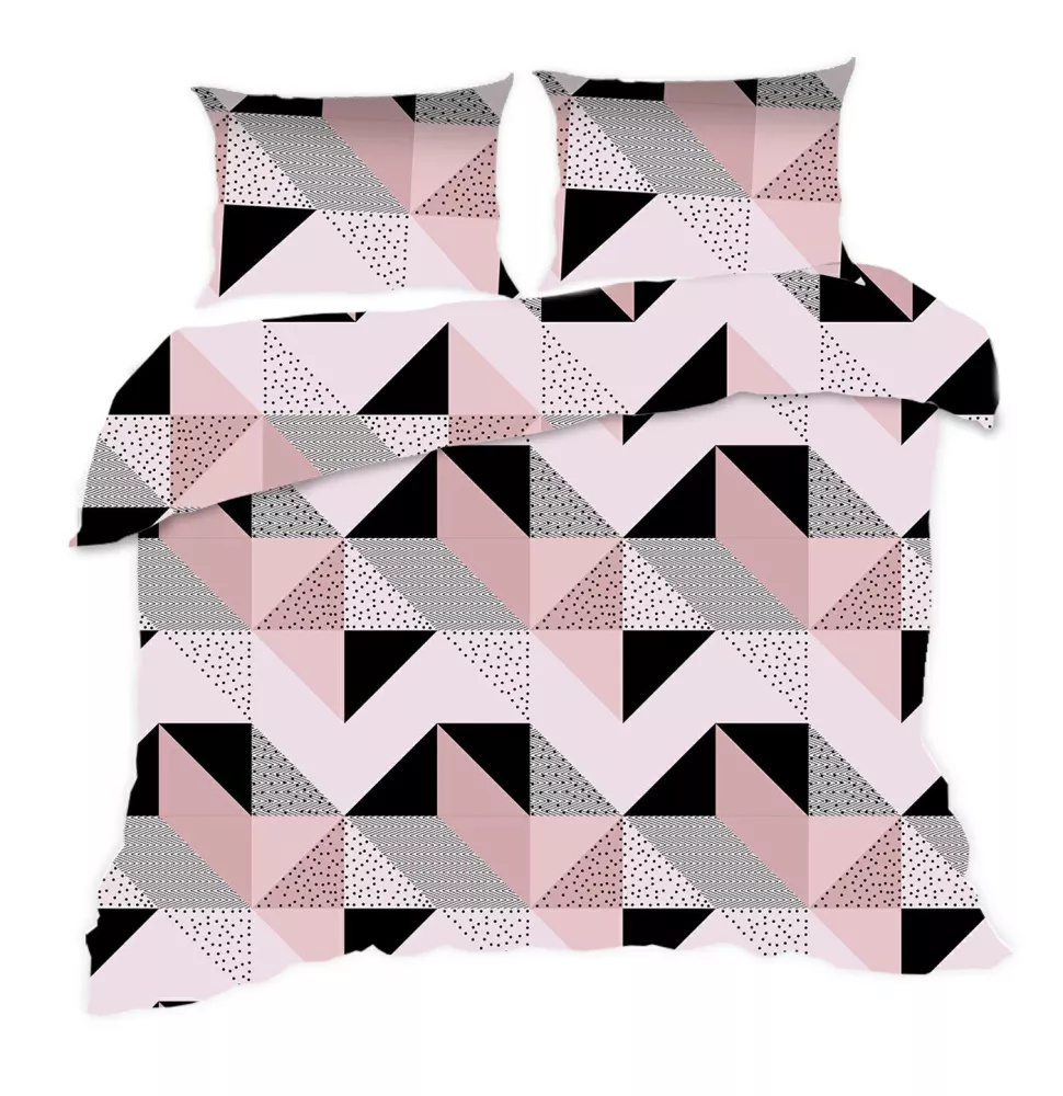 Komplet pościeli bawełnianej Classic E24 Karo 1840N geometria pudrowa czarna – 100% bawełna, mocny splot, 2 elementy