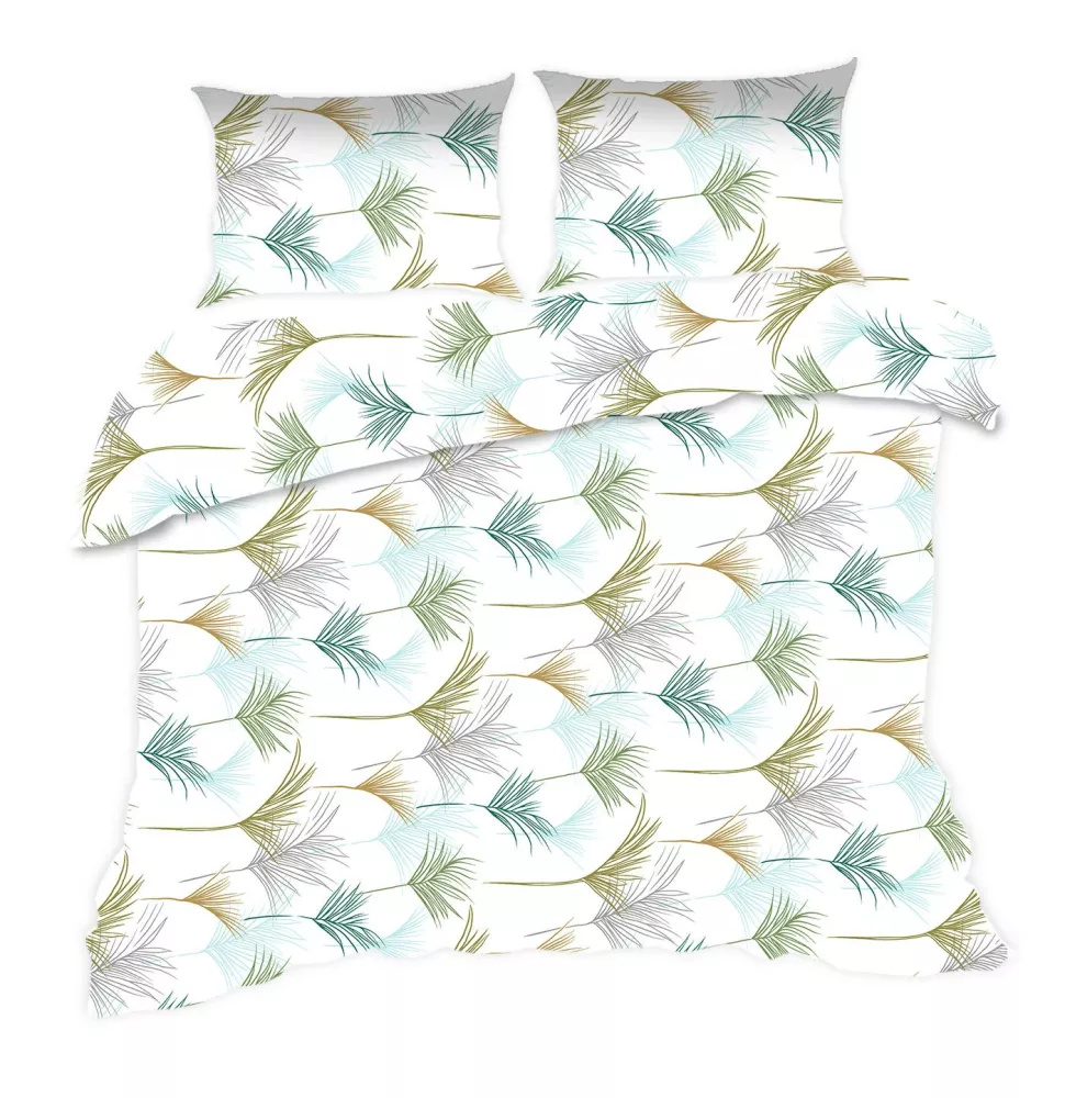 Komplet pościeli bawełnianej Classic E24 Karo 1816N liście biała turkusowa – 100% bawełna, mocny splot, 2 elementy