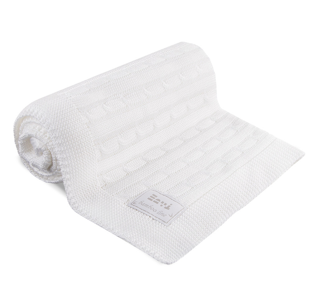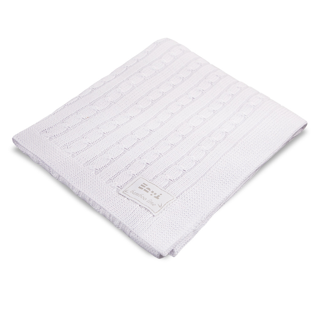 Kocyk bambusowy Eevi w białym odcieniu został wykonany z wysokiej jakości włókna bambusowego, które jest niezwykle delikatne i bezpieczne dla wrażliwej skóry dziecka.