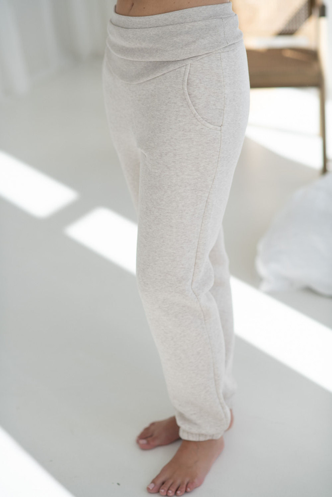 Motherhood Milk&Love latte melange– spodnie ciążowe dresowe z elastycznym pasem, gruba dzianina, bawełna z poliestrem