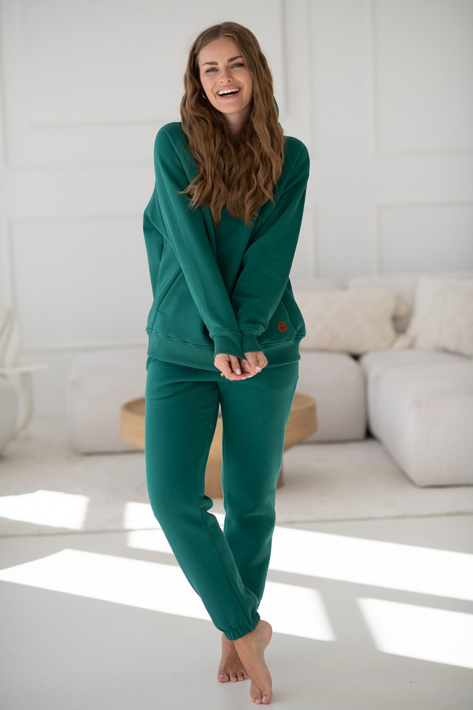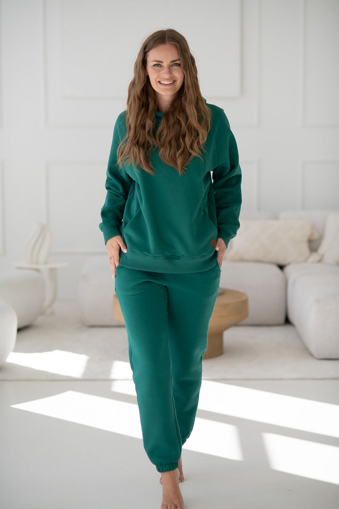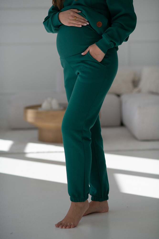 Motherhood Milk&Love butelkowa zieleń– spodnie ciążowe dresowe z elastycznym pasem, gruba dzianina, bawełna z poliestrem