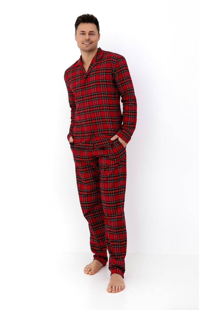 Sensis Philip – męska piżama z flaneli bawełnianej, w kratkę