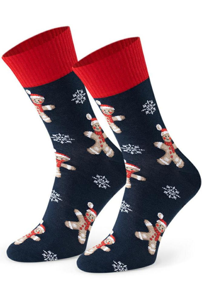 Skarpety zdobią oryginalne, świąteczne motywy, które przyciągają wzrok i wprowadzają wyjątkowy nastrój. Dzięki elastycznemu wykończeniu dobrze trzymają się na stopie, zapewniając komfort noszenia bez ucisku.