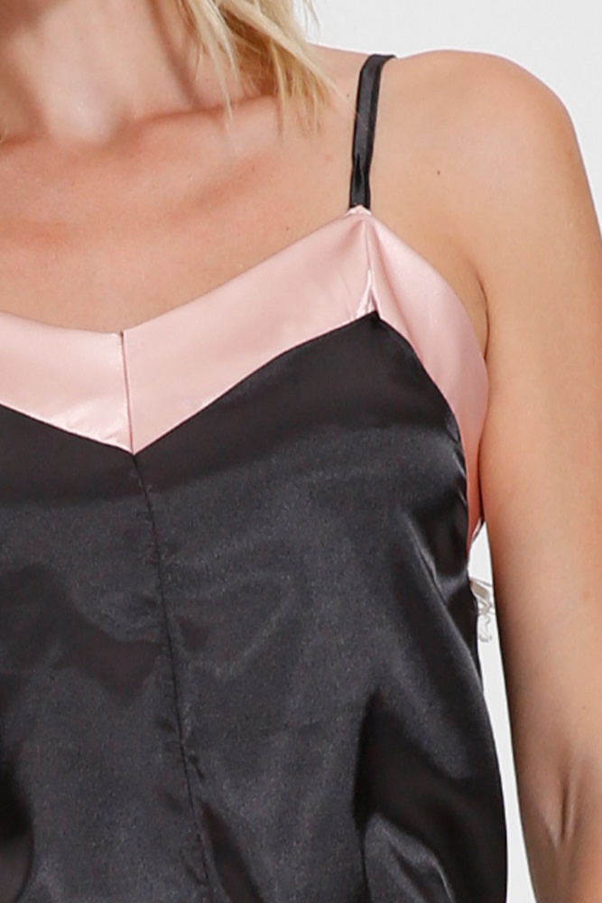 • Exes D492 – satynowa piżama damska z topem na ramiączkach i luźnymi szortami. Subtelny połysk