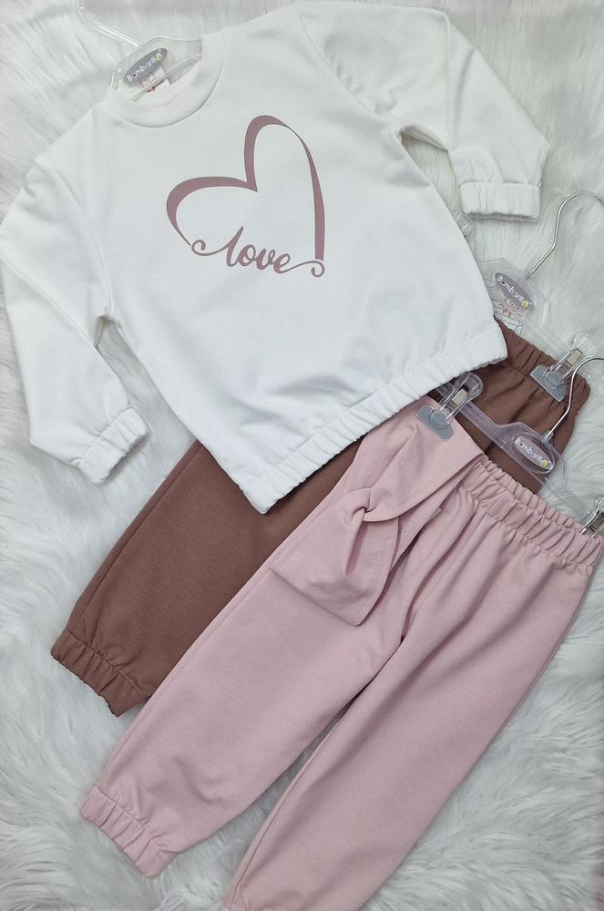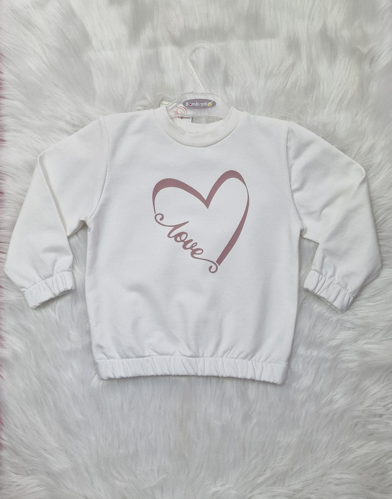 Bambarillo Love Heart – bluza dziecięca ecru, dzianina dresowa, zdobienie DTF