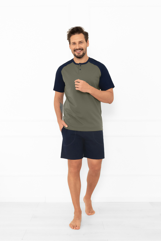 Męska piżama Italian Fashion Aleksander oliwkowa – krótki rękaw i spodenki