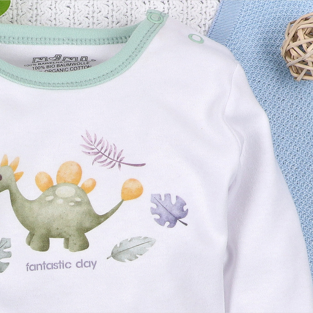 - Body Dino Explorer Nini – 100% bawełna organiczna, długi rękaw, wygodne zapięcie na napy.
