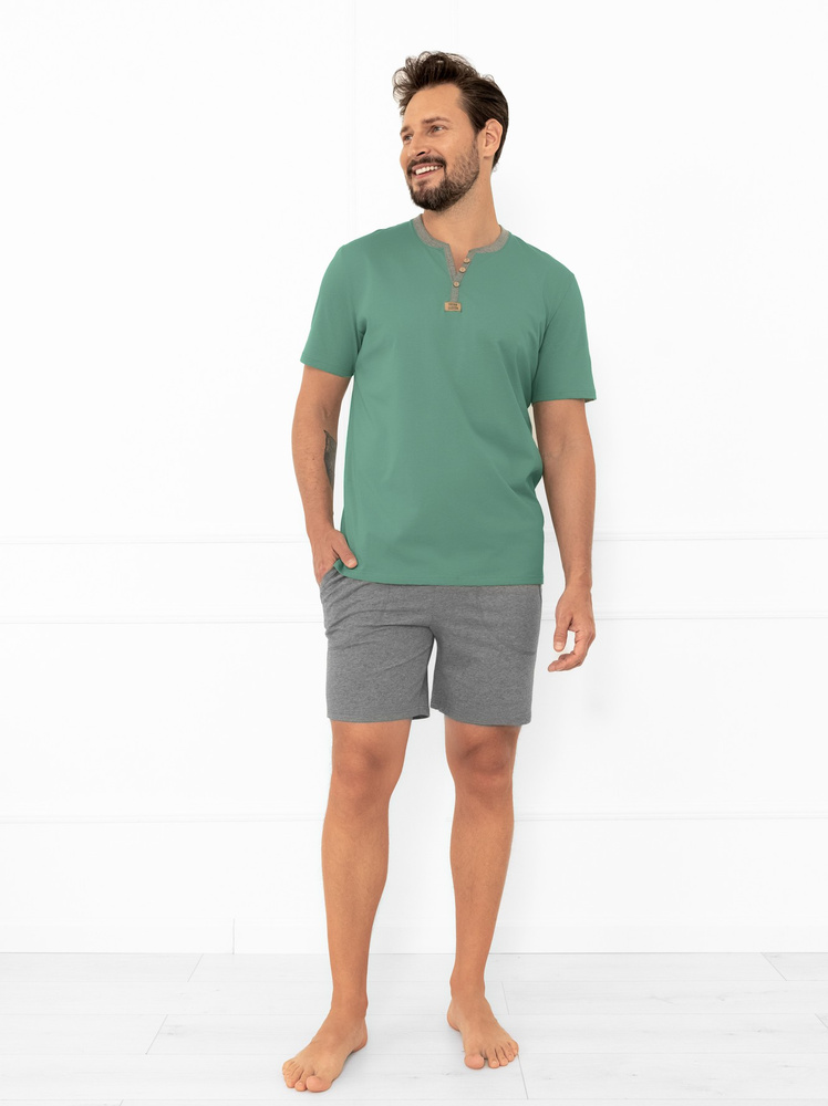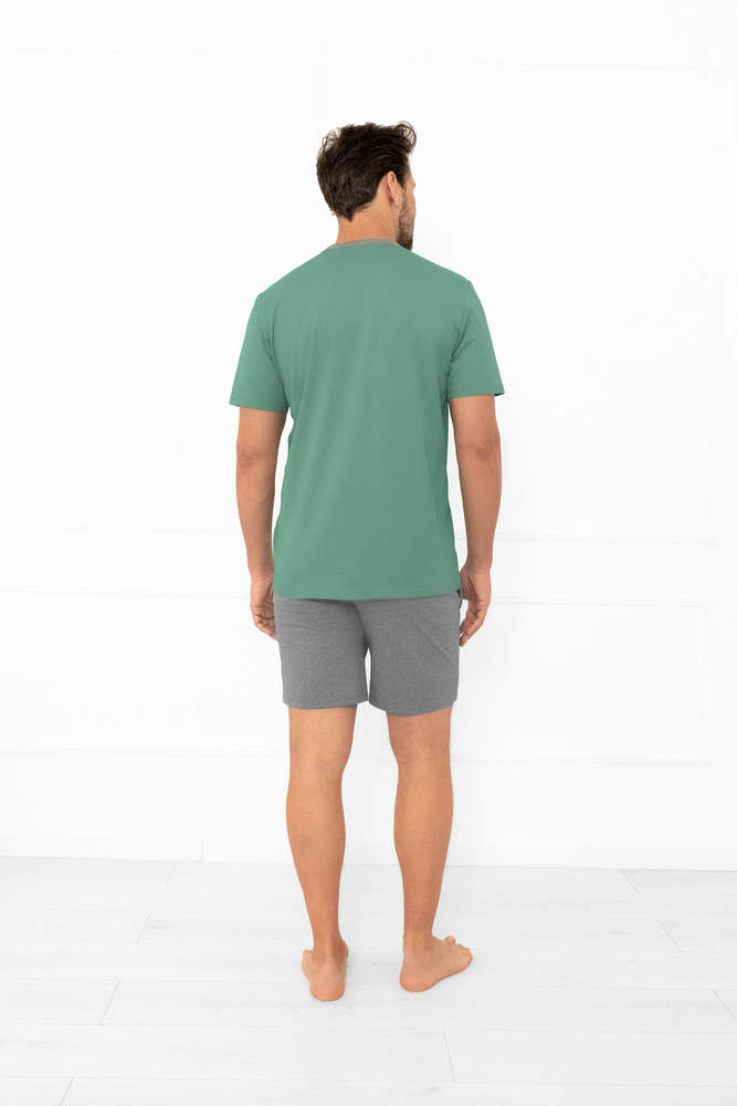 Piżama męska Juliusz Italian Fashion szałwiowa – bawełniana, koszulka i krótkie spodenki