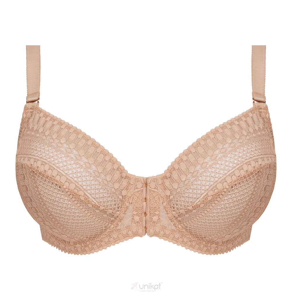 - Miękki biustonosz soft Unikat w beżowym odcieniu. Model bez usztywnień, zapinany z przodu, stworzony z myślą o komforcie i naturalnym wyglądzie.