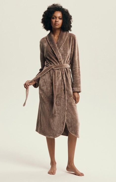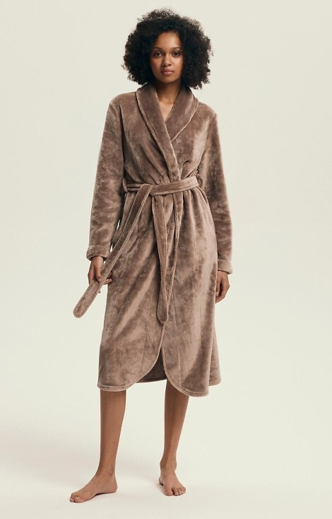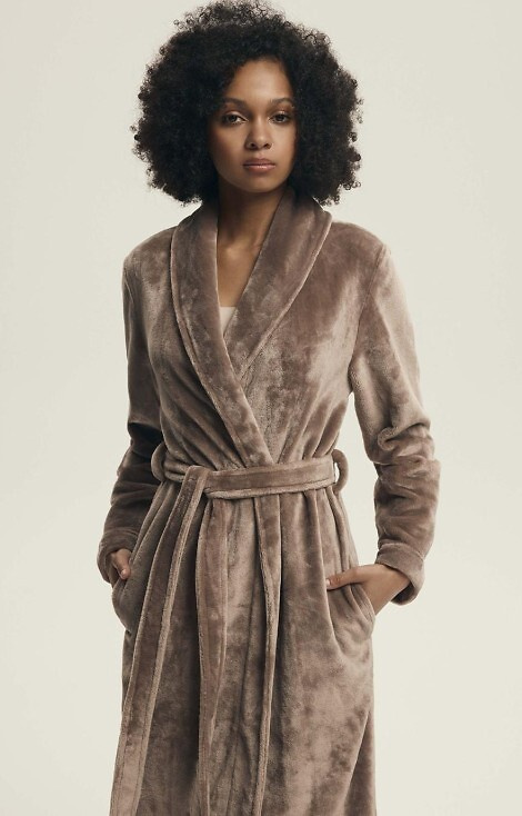 Szlafrok Henderson Dextra 43595 coffee– aksamitny w dotyku, za kolano