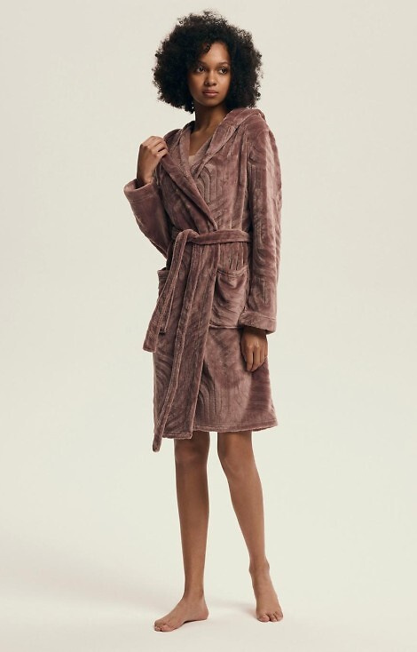 Krótki szlafrok damski 43602 Devyn Henderson mahogany– miękki, ciepły, z kieszeniami