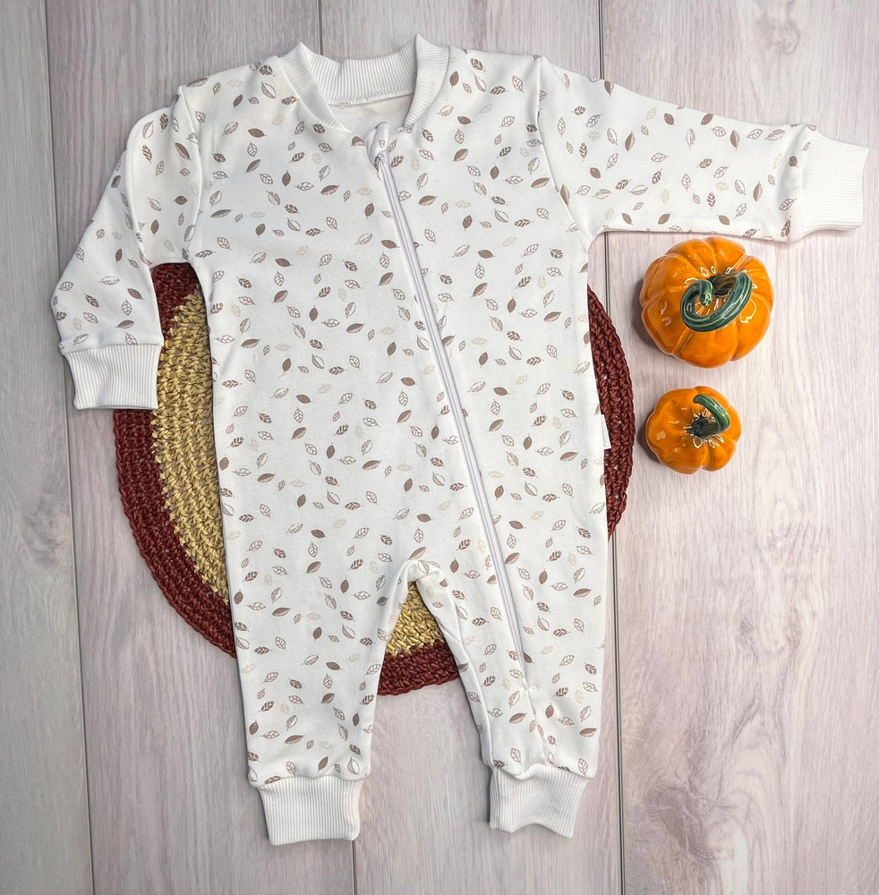 Bawełniany pajac niemowlęcy Mamatti PS15441 listki – bez stópek