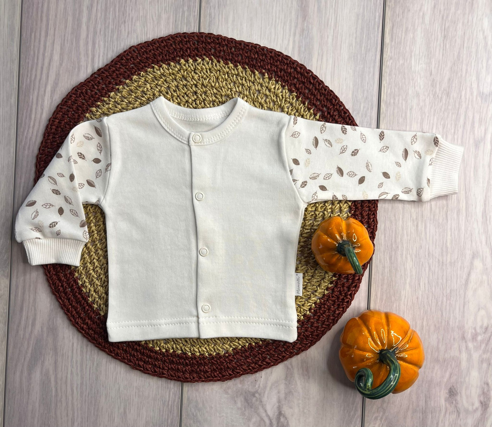 Bawełniany kaftanik niemowlęcy Mamatti KA15410 listki – zapinany na napy