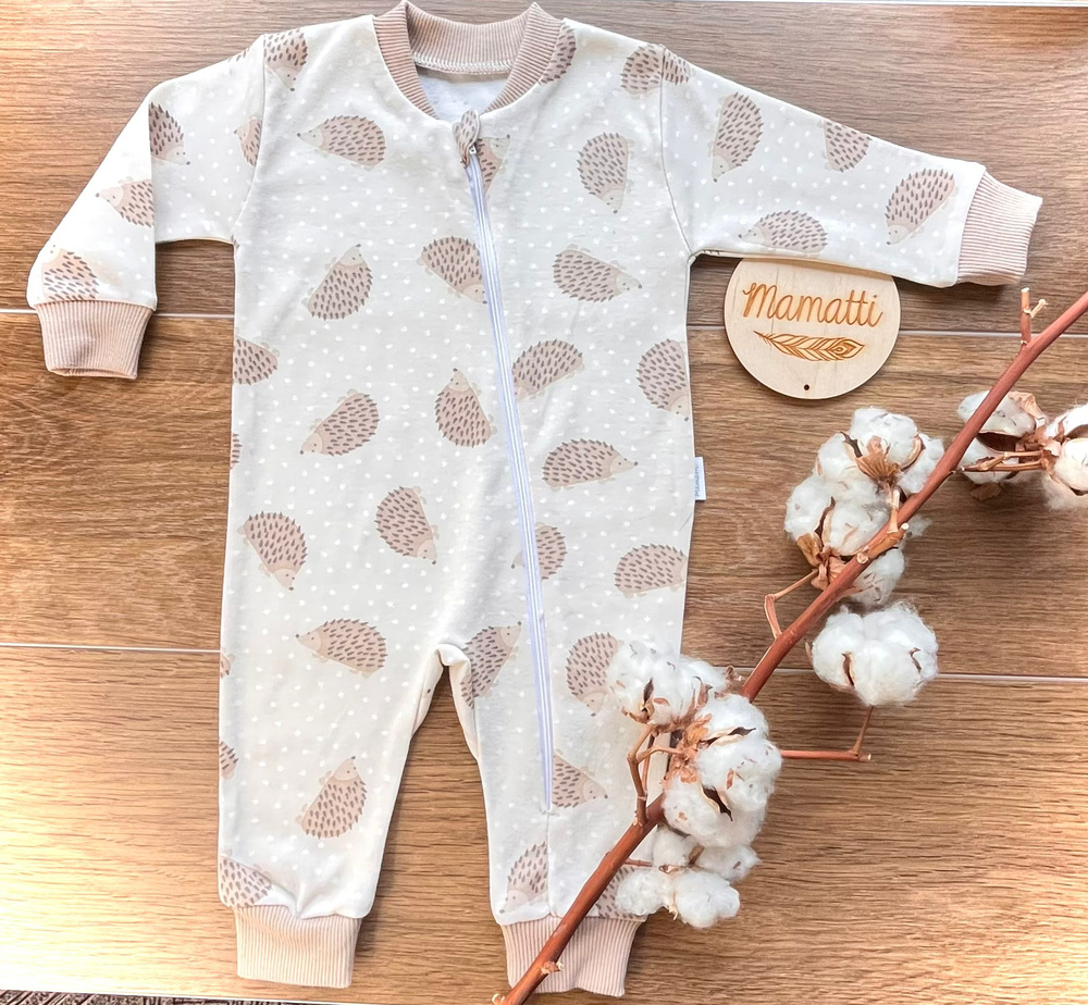 - Bawełniany pajacyk PS15741 jeżyk Mamatti. Praktyczny zamek, model bez stópek, delikatny i komfortowy.
